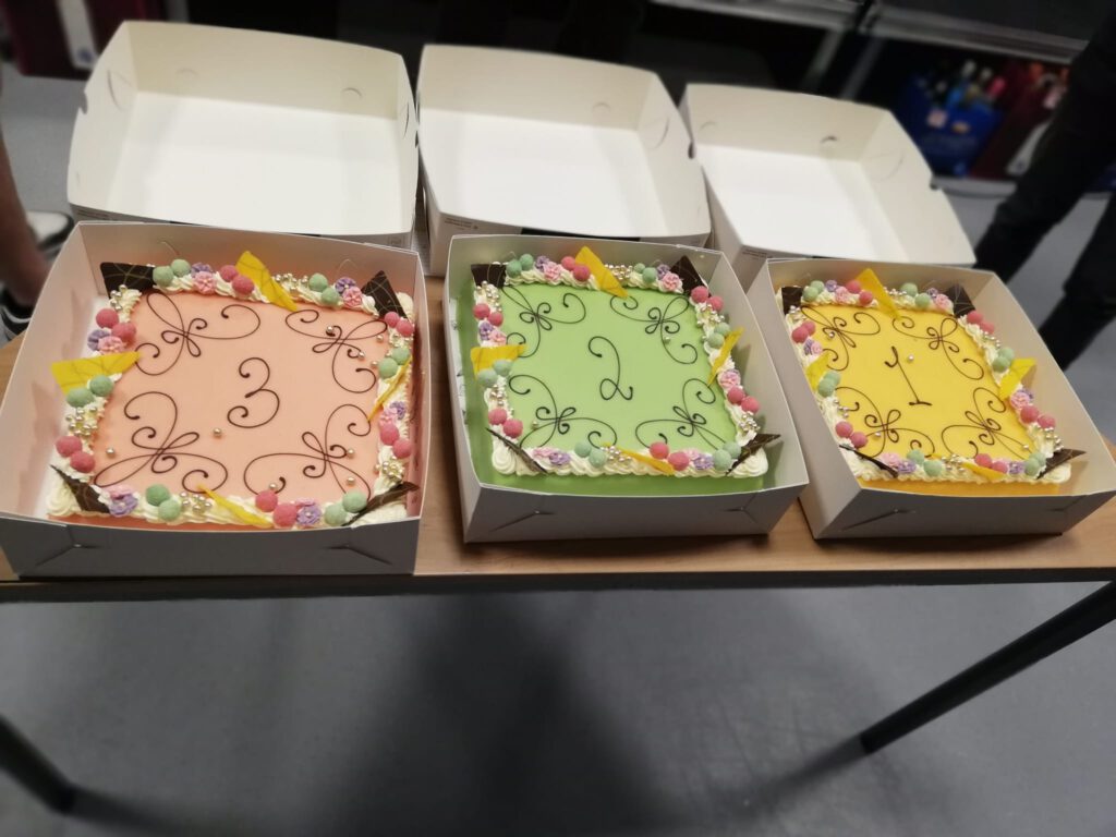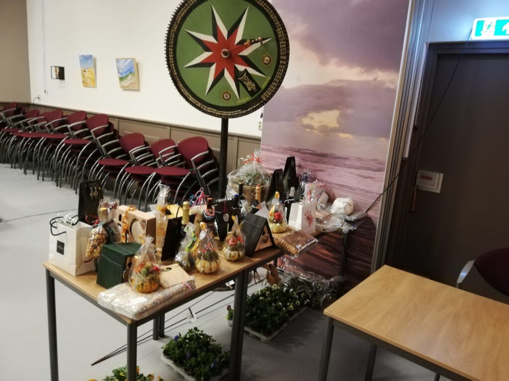 Veilingmeester Samantha in actieDe geveilde verrassingstaartenHet rad van onze loterijOnze vrijwilligers Gerard, Martin en Maaike